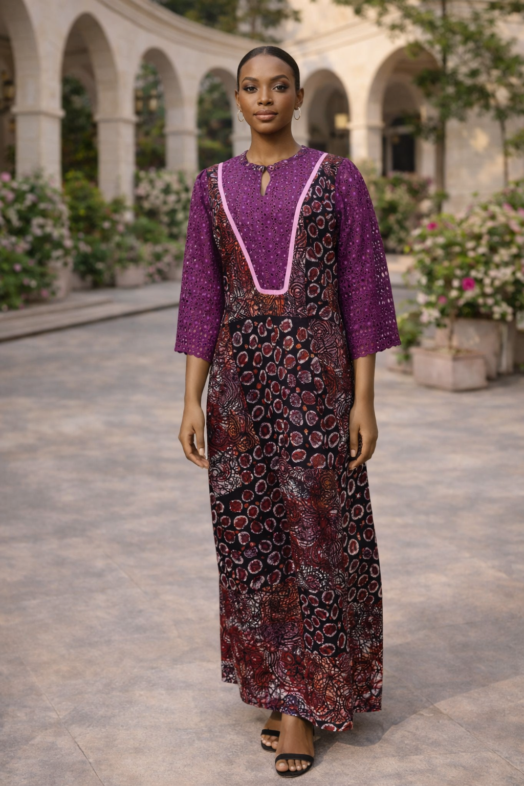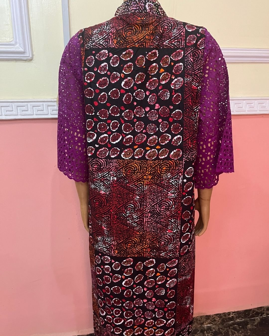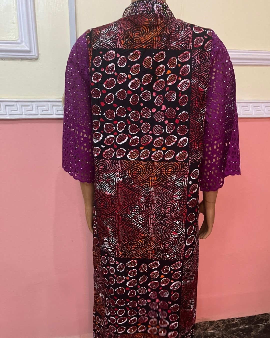 • Material: Premium Ankara cotton + embroidered eyelet lace