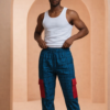 Crafted for the modern African man who loves authenticity with edge, the Deeyem Men’s Adire-Lace Accent Pants deliver a perfect fusion of traditional craftsmanship and contemporary streetwear elegance. Made from premium hand-dyed adire fabric in a rich burgundy and white motif, this piece stands out with its bold dual lace pockets in striking green. Each lace detail is intricately woven, adding dimension, heritage, and elevated style to this culturally expressive design.